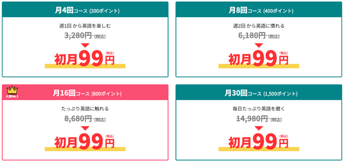 株式会社QQ English(本社:東京都新宿区、代表取締役:藤岡頼光、以下QQEnglish)は、2025年12月1日(月)〜12月31日(水)の期間限定で、新規入会者を対象に「全プラン初月 99円(税込)」キャンペーンを実施します。月4回/8回/16回/30回の全プランが対象となり、初月はどれでも一律99円で受講いただけます。