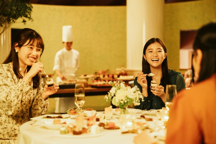 夕食は、少しフォーマルにフレンチディナーを楽しむことができます。シェフが、目の前でフランベをしてくれたり、料理の仕上げを見ることができたりなど、料理の香りや音も堪能できるディナーです。卒業のお祝いとして、少し贅沢で、特別な時間を仲間と楽しむことができます。