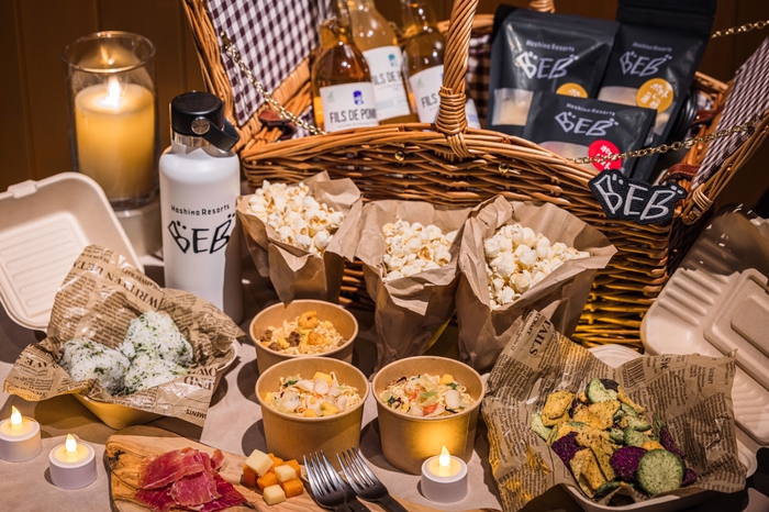 【オプション】さらに盛り上がりたい人向けに、さまざまな夜食が入った「お夜食BOX」販売