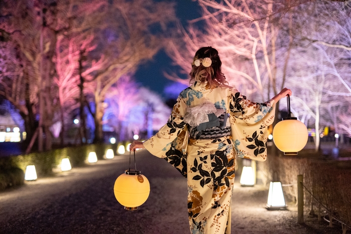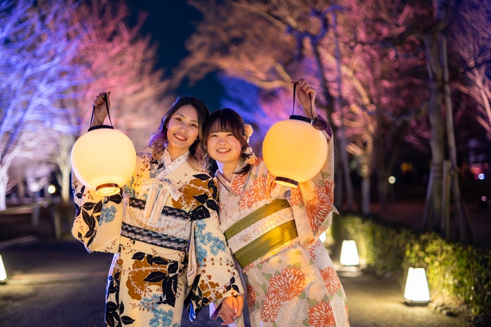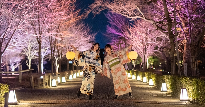 卒業旅行、桜の京都観光に。夜の二条城で桜のライトアップと着物レンタルのセット販売を開始。