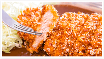 「亀田の柿の種」を活用したメニューに関するお客様からのアドバイスを「お客様の声 検討委員会」にて検討していたタイミングで、株式会社チャンピオンカレーからコラボレーションの提案があり、夢のコラボレーションが実現いたしました。両社で試作を重ね知恵を出し合い、“「亀田の柿の種」の新たな可能性をお客様に楽しんで欲しい!”との想いで完成したのが「亀田の柿の種 Lカツカレー」です。「亀田の柿の種」を衣に使用した「Lカツ」は、衣にカリっと食感のアクセントが加わり、ピーナッツや醤油の香ばしさがたまらない一品となりました。株式会社チャンピオンカレーの濃厚なカレーソースとの相性も抜群です!