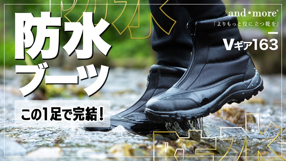 防水に特化した靴を企画販売を行う靴専門ブランド「and・more」を運営する、株式会社and・more(所在地:大阪市中央区、代表取締役:吉田 博美)は、「Makuake」にて、“この1足で完結!「防水ブーツ『Vギア163』」”のプロジェクトが目標金額1,735%を達成しました。本プロジェクトは応援総額1,000万円をネクストゴールに設定し、2021年12月30日(木)18時まで継続して実施します。
