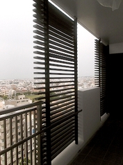 【納入事例レポート】あ、ここにも杉田エース!Vol.136沖縄県那覇市のファミリー層向けマンション。通路側の目隠しとして「エス・ウッドルーバー」を納品