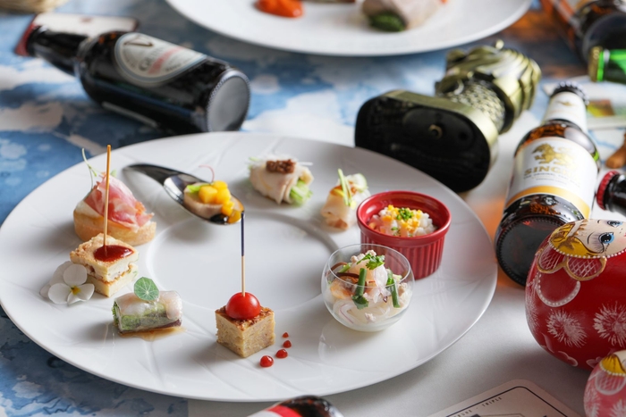 ストリングスホテル 名古屋2021年の夏のイベントは、With コロナ時代の今、「海外旅行に行きたいけどいけない」「遠出したいけどできない」という方向けに「旅行気分を少しでも味わってほしい」「安心安全にお食事を楽しんで欲しい」という想いから「世界のビアガーデン~旅するストリングス~」を開催いたします。海外旅行気分で18か国の本格料理と9か国のビールが飲める贅沢ビアガーデン。その国を代表する料理から日本ではまだまだ知られていない料理まで幅広く満喫いただけます。1品目の「STRINGS AIR NINE Hors-ďœuvre 」はベトナムの生春巻き、韓国のチヂミ、イタリアのブルスケッタなど9か国の料理をワンプレートで、2品目はニュージーランドの人気料理フィッシュ&チップスとオーストラリアのちょっぴりマニアックなパイフロッターを提供致します。メイン料理はシェフのカッティングサービスが目玉の「シュラスコ」をお楽しみいただけます。