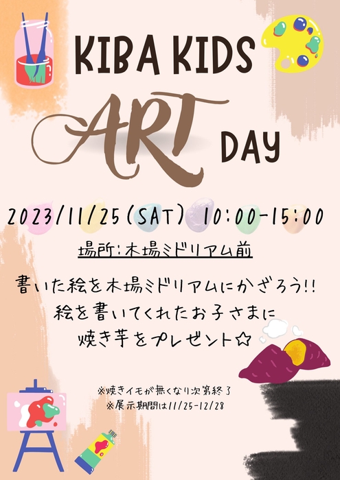11月25日(土)に木場公園では『遊べるアート展』を開催します!秋を感じながら美術と芸術の秋を満喫しませんか。公園をテーマに絵を書いて焼き芋をもらったり、絵画鑑賞をしたり、秋の恵みを感じて絵に書いて表現したり、公園の秋を親子で満喫しよう!