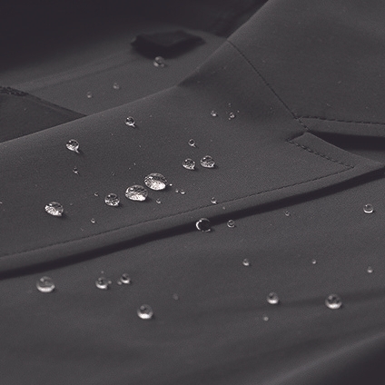 このようなストレスフリーな着心地に加えて、生地は伸縮後の回復性に優れており、シワになりにくいのも特徴です。また、撥水性があり雨や汚れに強く、自宅の洗濯機で丸洗いも可能でいつでも清潔に着用できます。今回EC販売するのはブラックとネイビーの2色で、SからLLの4サイズを用意しています。