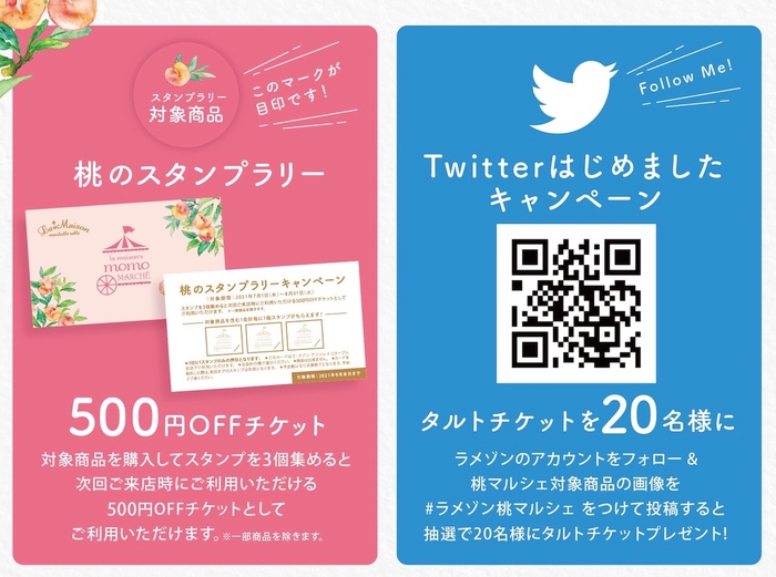 旬の桃をたっぷり味わえる『桃マルシェ』と、桃の商品を対象としたお得なスタンプラリーキャンペーンやTwitterキャンペーンを開催します。