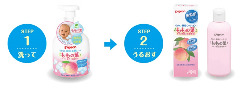 今回発売する「ピジョン薬用全身泡ソープ(ももの葉)」は、「からだを洗う時にも肌あれを予防する」という新しい視点のスキンケア商品です。「ピジョン薬用ローション(ももの葉)」と合わせてご使用頂くことで、「洗って、うるおす」の2ステップで赤ちゃんの肌あれを防ぎ、お肌をすこやかに保つことができます。ピジョンは40年以上続くベビースキンケアのリーディングカンパニーとして、ママと赤ちゃんの新しいスキンケア習慣をご提案してまいります。