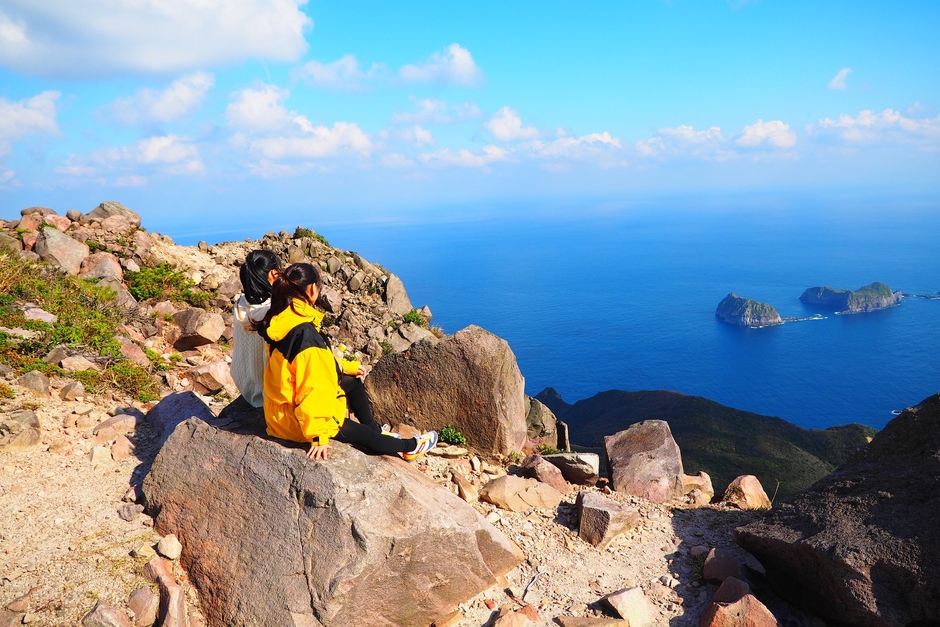 絶景トレッキングを楽しめるスポット。山頂部には1年を通して伊豆諸島の固有種を始めとする花々が咲き、「花の百名山」にも選ばれています。山頂からは神津島の美しい海を一望することができ、黒潮の大展望台として「新東京百景」にも選出されています。身軽に登れる山なので、女性はもちろん、島の山ならではの絶景を求めて訪れる方々から人気です。