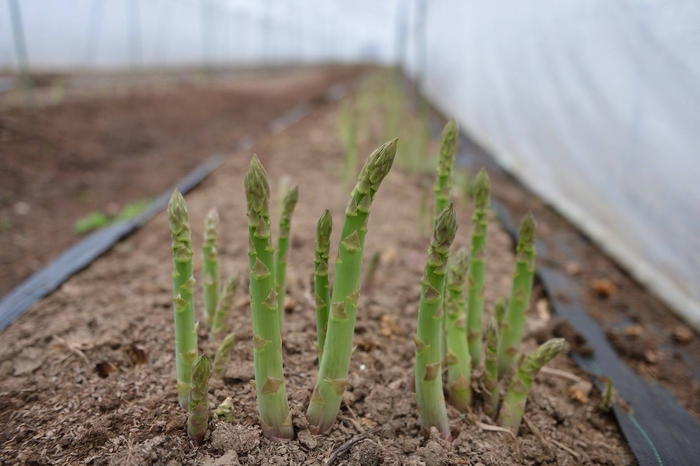 北海道赤平市にある「ほりぐち農園」では、4月に入るとグリーンアスパラを収穫しており、4月中旬~6月上旬はハウス栽培、5月上旬~6月中旬は露地栽培を行っています。ハウス栽培のアスパラは、太めで柔らかく、しっかりとした甘みで青臭さがなく、露地栽培のアスパラは、色も味も濃く、 春の山菜のように香り高いのが特徴です。