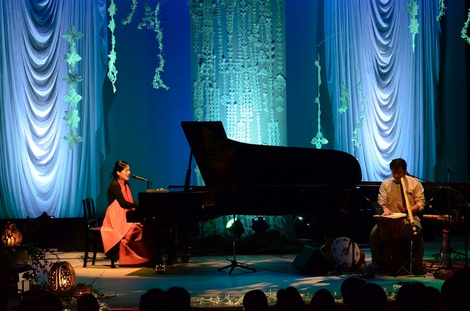 天から聴こえてくるような歌とピアノ、世界の様々な民族楽器とのハーモニーが魅力。