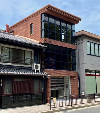 素焼きのレンガの外装が歴史ある京都の町に馴染んでおり、周辺のランドマークのような存在です。地下鉄烏丸線丸太町駅まで徒歩1分。京都駅まで地下鉄で9分。道路を挟んで京都・御所目の前の立地です。