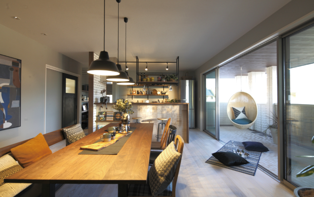 ダイニングテーブルの主な用途は「食事」ですが、日常の中で様々なことを行う場所として、実に多様に使われています。例えば、夫婦ふたり暮らしの場合でも、あえて大きなテーブルを置くことで、食事以外の時間も、パソコンや読書など互いに好きなことをして過ごす居どころになります。椅子を増やせば、友人や、離れて暮らす子どもや孫たちが加わって大人数で食事をするときにも対応が可能です。