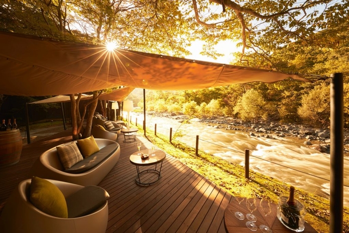 奥入瀬渓流沿いに建つ唯一のリゾートホテル「星野リゾート 奥入瀬渓流ホテル」では、2022年10月1日、錦秋の奥入瀬渓流でせせらぎと紅葉を堪能できる「渓流紅葉ラウンジ」が誕生します。当ラウンジでは、大自然が作り出す美しい紅葉と渓流が織りなす絶景を楽しみながらカクテルを堪能できます。