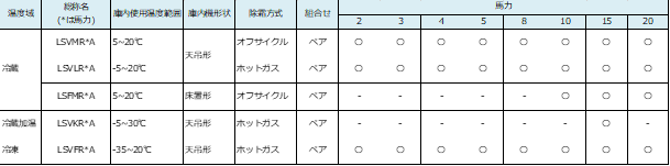 新たに大容量庫内機の冷蔵20馬力、冷凍15・20馬力をラインアップし、より大型保管庫のニーズにお応えします。また、15馬力で冷蔵加温タイプを新規ラインアップし、新たな用途へも対応していきます。