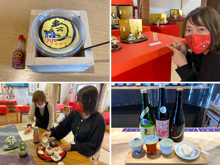 旧枝梅酒蔵を改修した「酒の蔵えん」でランチを食べ、「さがん大地」では「食べる日本酒プリン」を堪能。