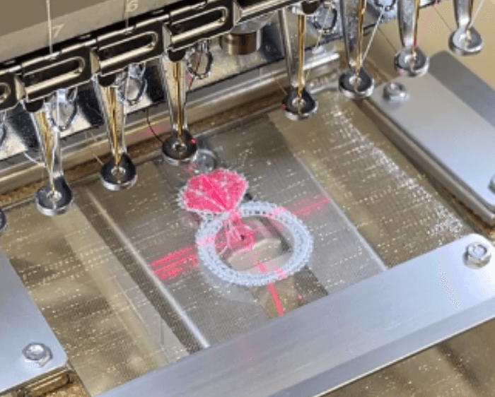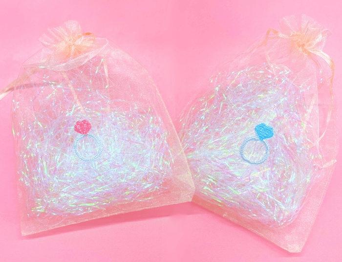 本格的なミシンで刺繍される様子を間近で楽しめます。巾着や刺繍の色も自由に選べるので、自分だけの特別な刺繍オーガンジーポーチが完成します!ワッペンや刺繍追加のオプションもご用意しています。