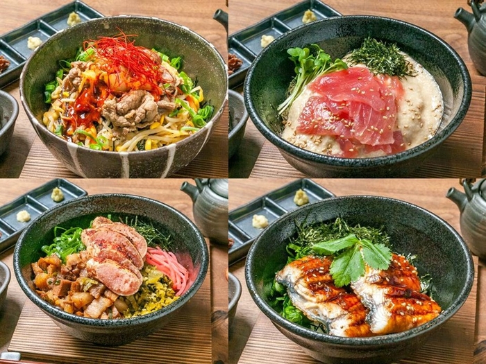 「新鮮な真鯛やまぐろ」、「香ばしいタレでじっくり焼き上げたジューシーな肉厚うなぎ」や「濃厚炙り明太子自家製焼き豚」などを自慢で出汁でいただきます。