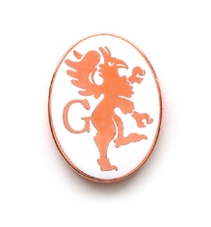 今回は、その商業ビルオープン時の来場記念品として、また同ビル4F及び最上階で営業しているレストラン・スタッフの社章とするために、ロゴプレートとピンバッチを製作されました。モチーフには、社長様自らが考案された仮想の動物をデザインしたレストラン「GRIFFIN'S」のロゴ・マスコットを使用。自社ブランド性の高い事業であるだけに、オリジナリティーに加え、格式高い英国の雰囲気が伝わる作品となっています。