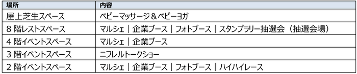 2つのフォトブース、親子英会話、保険、食材宅配などの企業PRブースも出店します。