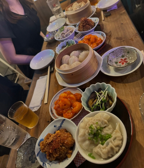 さらに、店主はお酒が好きなので、料理がアルコールと相性が良いことを意識しています。現在は餃子に加え、小皿料理(おばんざい)も提供しています。中華料理は大皿で提供されることが多く、少人数や一人での来店が難しいと感じる方も多いと思います。そこで、少量ずつ色々な料理を楽しめるように工夫しました。一人でも気軽に楽しめる、中華とおつまみが融合したような新しいスタイルを目指しています。