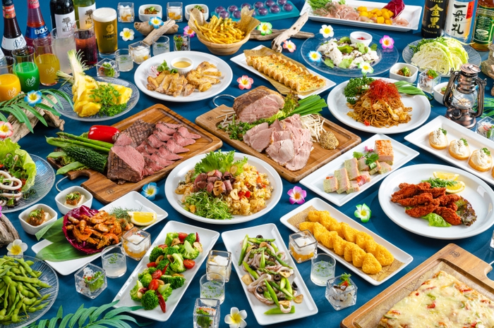 「ビアホール」ではスパイシーなテイストがくせになりそうな「スパイシーポテト」や「スルメイカとアスパラのチリソース」、「ササミスティックホットチリ」、またボリューム満点の肉メニューから「牛リブロース肉のグリエ」、「ローストポーク」、ビールのお供に外せない「枝豆」や「冷奴」など20種類以上の料理をご用意しました。ビュッフェスタイルでお好きなだけお召し上がりいただけます。
