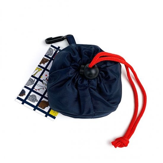 軽くて使いやすいポリエステル製のエコバッグで、しかも収納できる巾着付きです。マスコットのような巾着なので、持ち歩くのも楽しくなるアイテムですよ。
