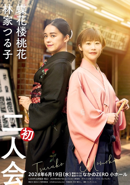桃花らくご制作委員会主催、『蝶花楼桃花 林家つる子 二人会』が2024年6月19日 (水)になかのZERO 小ホール(東京都中野区中野2丁目9番7号)にて開催されます。チケットはカンフェティ(運営:ロングランプランニング株式会社、東京都新宿区、代表取締役:榑松 大剛)ほか各プレイガイドにて2024年4月27日(土) 10:00より予約受付開始です。