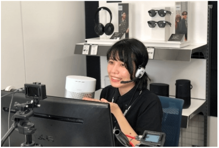 今回のサービスでは例として完全ワイヤレスイヤホンなど新製品の特長や仕様の説明を、専用のスタジオからオンライン上でオペレーターが対面でご案内します。お客様が購入を検討する際に特に気になるポイントについて、実際の製品を使用した実演や、さまざまな動画や画像も織り交ぜながら分かりやすく質問にお答えします。