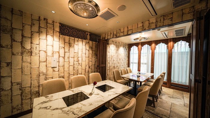 また、店内の装飾品にもこだわりを持っており、モロッコの職人さんの特注品やペルシャ絨毯など、一つ一つを妥協することなく施しております。