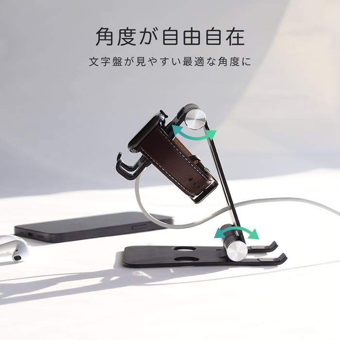 ・角度調整ができるので、Apple Watchやスマートフォン、タブレットを最適な角度で使用することが可能です。