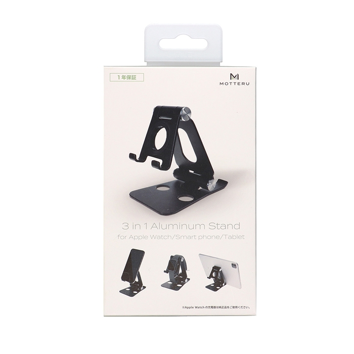 ・Apple Watch、スマートフォン、タブレットで使える3WAYスタンドとなっています。