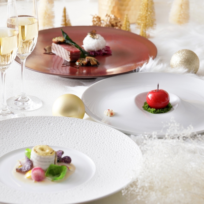 クリスマスの華やかなシーズンは、ホテルからお客様へ「ありがとうの“Gift”」のテーマのもと、白雪姫の幸せなフィナーレを題材にしたロマンチックなディナーコースをご用意。お食事の合間に聖歌隊による生歌とピアノの生演奏もお楽しみいただけます。