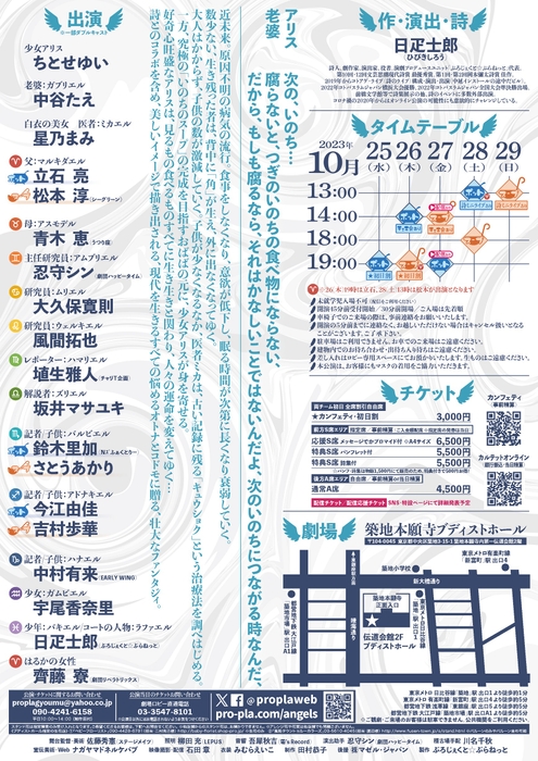 ぷろじぇくと☆ぷらねっと(代表:日疋士郎)主催、『Here Come The Angels!』が2023年10月25日 (水) ~2023年10月29日 (日)に築地本願寺ブディストホール(東京都中央区築地3-15-1)にて上演されます。