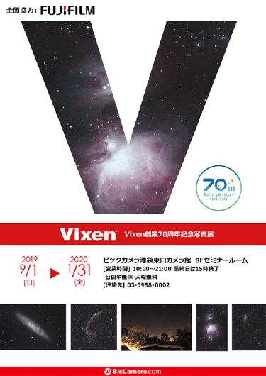 このたび70周年を記念しまして、9月1日~来年1月31日までの期間、ビックカメラ池袋東口カメラ館様のご厚意により『Vixen創業70周年記念写真展』が開催されることとなりました。