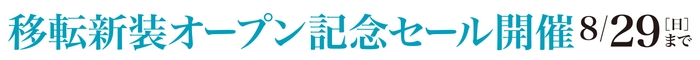 7月30日(金)~8月29日(日)の期間、オープン記念セールを開催いたします。また、7月30日(金)~8月1日(日)の3日間、税込10,000円以上お買い上げいただいた方に「OPEN記念グッズ」をプレゼントいたします。※無くなり次第終了となります。