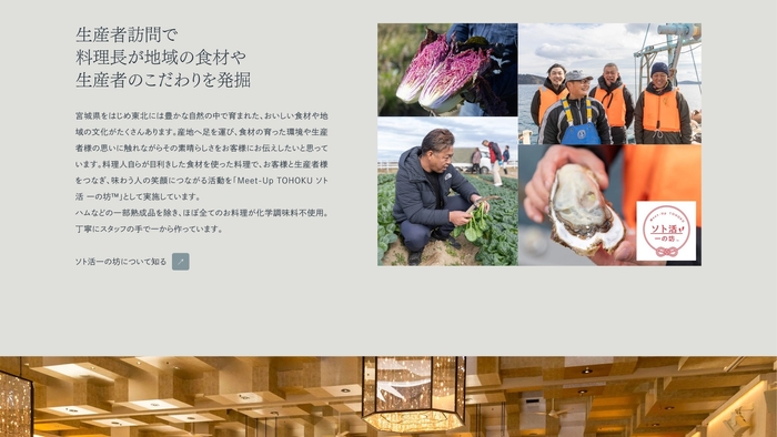 生産者訪問で料理長が地域の食材や生産者のこだわりを発掘しながら、三陸の豊かな海が育んだ新鮮な海の幸を中心に、フレンチと日本料理を提供しています。