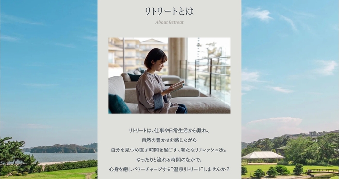 豊かな自然を感じながら温泉でリラックスする過ごし方「温泉リトリート」というキーワードにフォーカスしています。