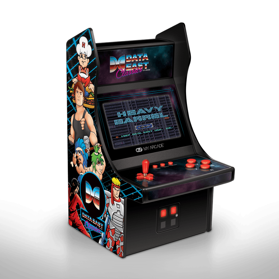 本製品は『バーガータイム』『空手道』『B-WINGS』など国内外に根強い人気を誇るデータイーストのゲーム34タイトルを一台に収録した公式ライセンス商品で、4.25インチのフルカラースクリーンを搭載し、サイズも従来のレトロアーケードシリーズより一回り大きいサイズとなっております。