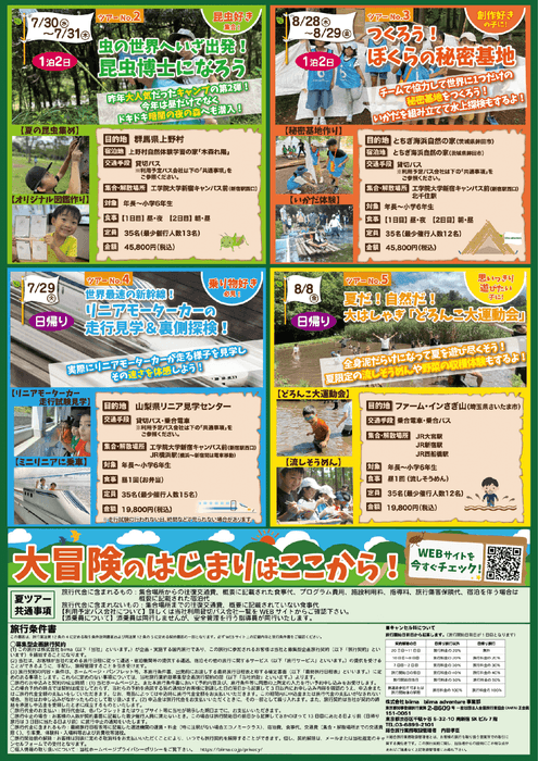 ■7,8月限定の夏休み特別企画 ツアー詳細(https://www.biima-adventure.com/summertour)