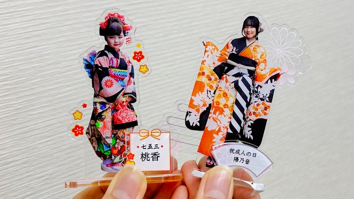 着物レンタルをはじめ、撮影商品とアクリルスタンドを一緒に販売することで、商品の製作から完成段階まで一貫性を確保することができます。プロによる着物着付けサービスと写真撮影が終わった後は、カメラマンがお客様からのニーズに応じてアクリルスタンドの製作依頼を行いますので、着物、写真、アクリルスタンドという一連の商品製作の流れがスムーズになることはお客様に安心感を与えるサービスであると言えます。