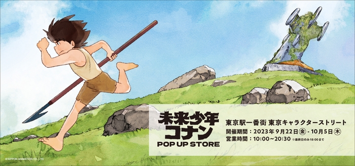 日本アニメーション株式会社(本社:東京都中央区、代表取締役社長:石川和子)がアニメーション制作・ライセンス展開を行う『未来少年コナン』の期間限定店舗「未来少年コナン POP UP STORE」を、2023年9月22日(金)から10月5日(木)の期間、東京駅一番街 東京キャラクターストリート内にて開催いたします。