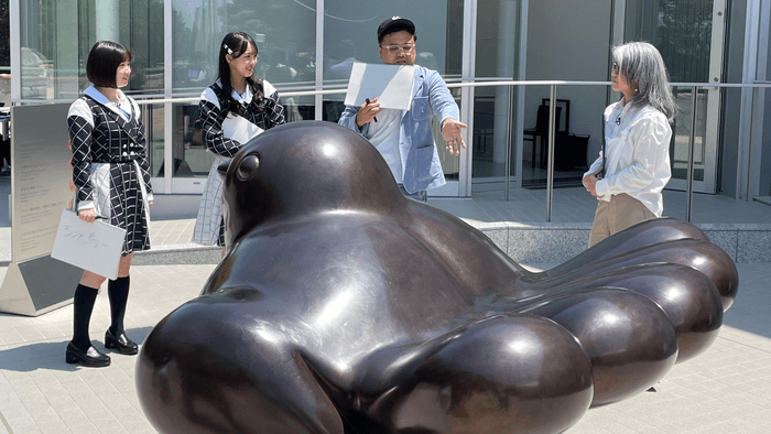 とろサーモン久保田かずのぶさんと、ここあ(甲斐心愛)&あかりん(福田朱里)が現代アート作品を観ながら、作品に込められたメッセージを独自の視点で考察!