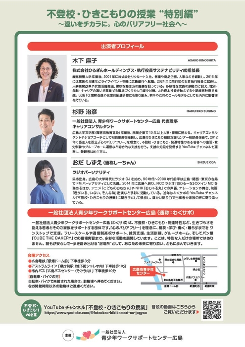 広島で無料イベント開催|「不登校・ひきこもりの授業」特別編 ~違いをチカラに。心のバリアフリー社会へ~ | NEWSCAST