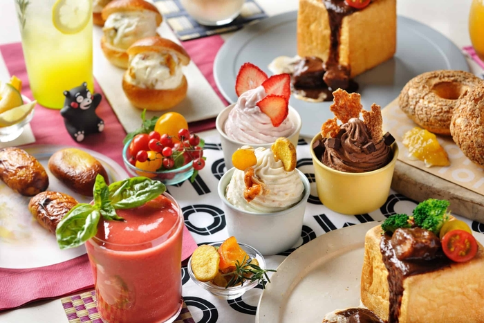 OMOベース内にあるカフェでは、朝食とカフェメニューを提供します。一日の始まりにおいしい朝食でエナジーチャージをしたり、街歩きの合間にくつろいだり、滞在中さまざまな場面で利用できます。熊本名物「からし蓮根」をアレンジしたキューブトーストや、アイスクリームと具材をその場で混ぜて作るジェラートを用意しています。