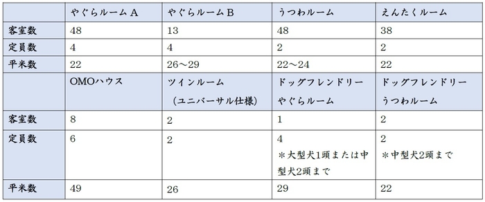 付帯施設 :フロント、ライブラリーラウンジ、ショップ、カフェテリア「OMOカフェ&バル」(外来利用可能)、ロッカー、ランドリーなど