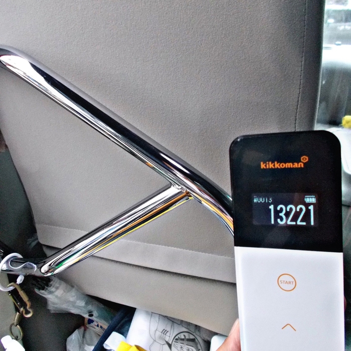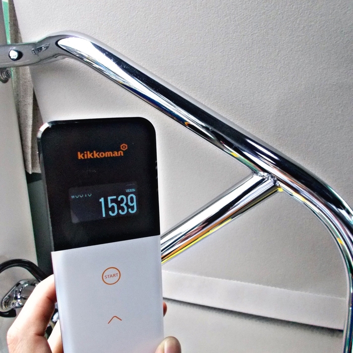 キッコーマン株式会社ルミテスター SmartでATP測定法(ATP拭き取り検査)で菌のエネルギー値を測定しました。