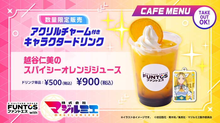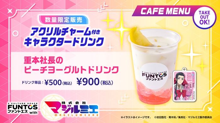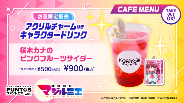 期間中(10月18日~11月25日)、アクリルチャーム付きドリンク900円(税込)、ドリンク単品500円(税込)にて提供いたします。