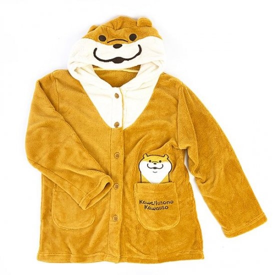 カワウソカラーのキャメルカラーが暖かさをプラスしてくれています。カワウソくんのほのぼのとした表情のフード付きなので、かぶるとまるで着ぐるみ状態に♪