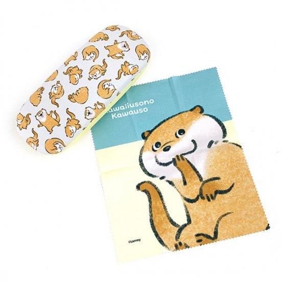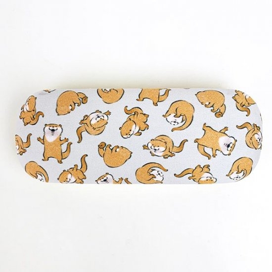 カワウソがチラシ柄になったメガネケースも登場です。いろいろなポーズのカワウソが大集合♪